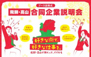 「飛騨・高山合同企業説明会」が12月25・26日に高山市民文化会館で開催されます。 大学・短大・専門学校等の新卒予定の学生の方や転職・パート希望の一般求職者の方は勿論ですが、地元企業に興味のある高校生の方も対象です。 当 […]